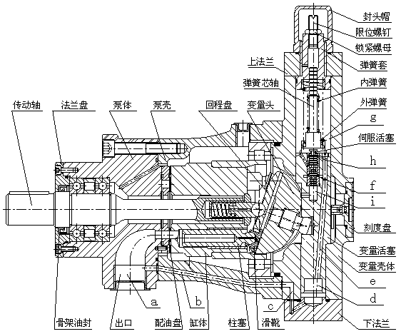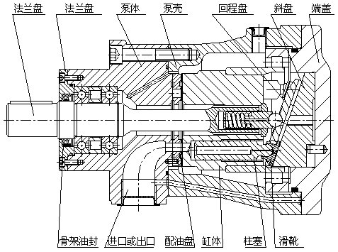 定量機構中斜盤始終固定在定量端蓋上,不能改變柱塞的行程,所以其流量是固定的。
