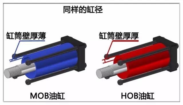 MOB拉桿油缸有定位臺(tái)階,HOB與YGC/YGD油缸無(wú)定位臺(tái)階。