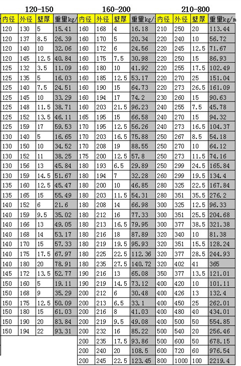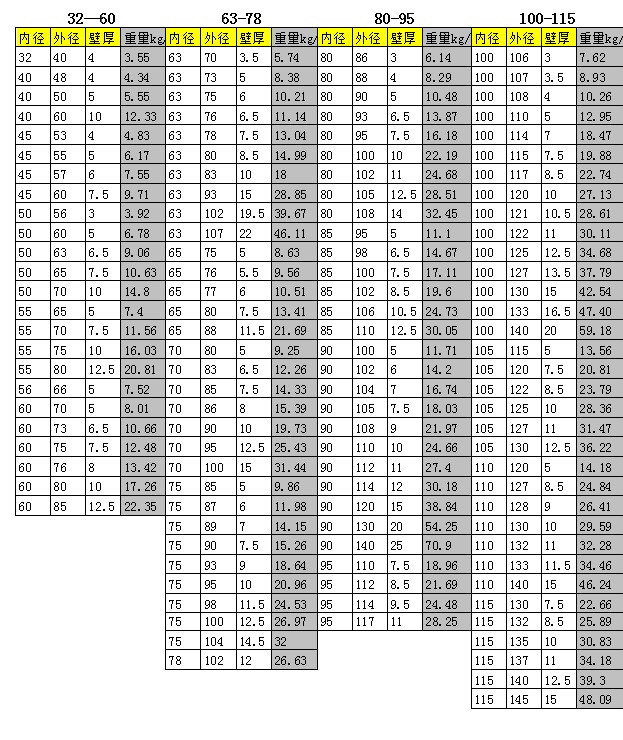 單位:重量(kg),壁厚、外徑(mm),長(zhǎng)度(m)